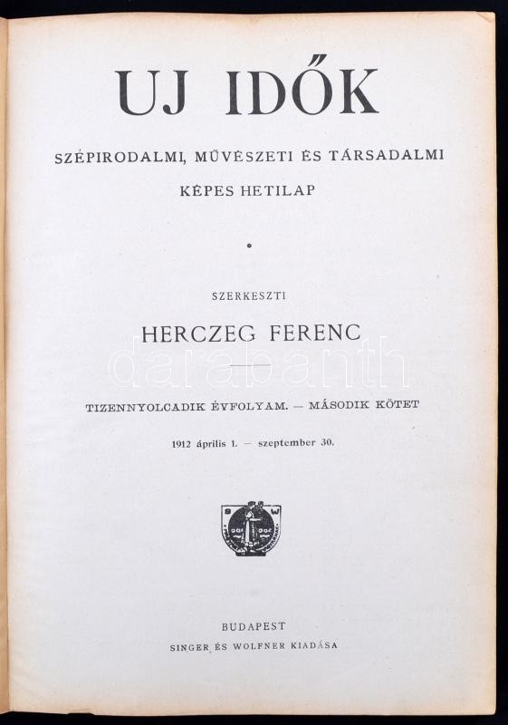 1912 Az Új Idők c. napilap teljes évfolyama, két félbőr kötésű könyvbe... https://www.darabanth.com/de/260-Fernauktion/260.0/Andere-Sammelgebiete/Drucksachen~26/1912-Az-Uj-Idok-c-napilap-teljes-evfolyama-ket-felbor-kotesu-konyvbe-kotve-jo-allapo~II1287271