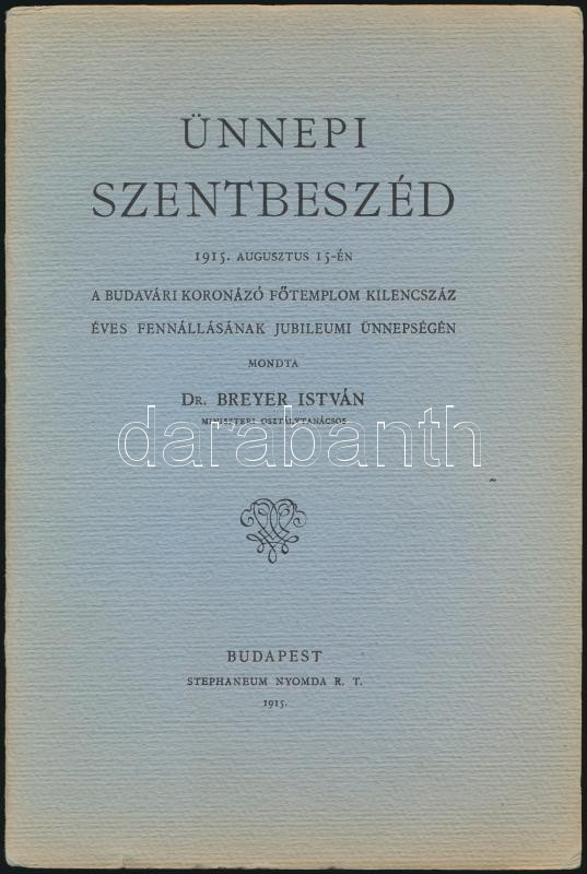 1915-28 dr. Breyer István: Ünnepi Szentbeszéd a Budavári koronázó Főte... https://www.darabanth.com/de/260-Fernauktion/260.0/Andere-Sammelgebiete/Drucksachen~26/1915-28-dr-Breyer-Istvan-Unnepi-Szentbeszed-a-Budavari-koronazo-Fotemplom-kilencszaz-eves~II1280114