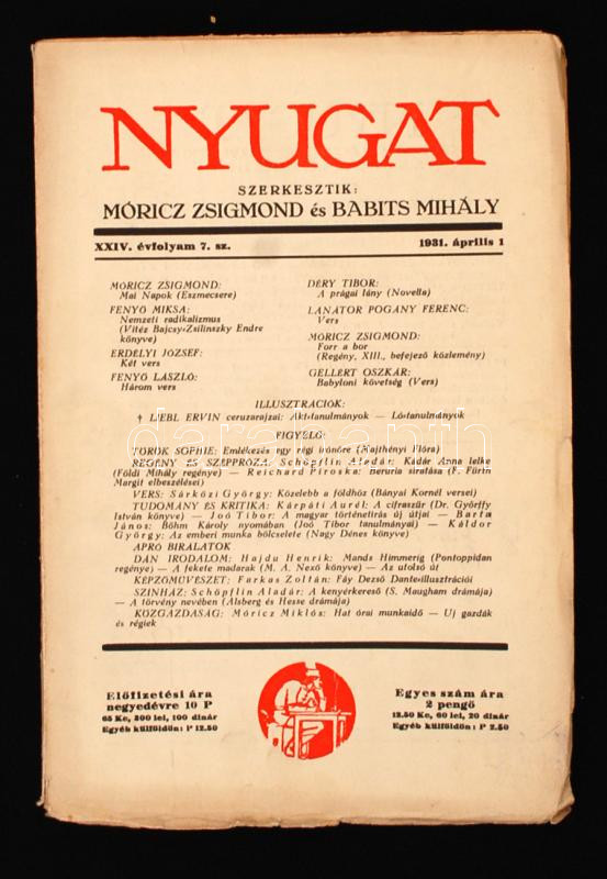1931 Nyugat, 7. szám, szerk.:Móricz Zsigmond, Babits Mihály, pp.:428-... https://www.darabanth.com/de/260-Fernauktion/260.0/Andere-Sammelgebiete/Drucksachen~26/1931-Nyugat-7-szam-szerkMoricz-Zsigmond-Babits-Mihaly--pp428-493-24x17cm~II1258768