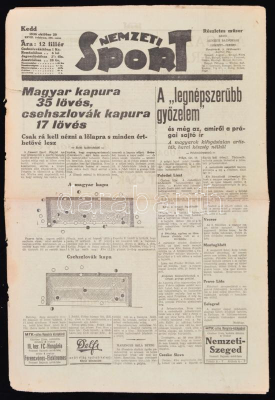 1936 Nemzeti Sport. Kis szakadással, pp.:8, 47x31cm https://www.darabanth.com/de/260-Fernauktion/260.0/Andere-Sammelgebiete/Drucksachen~26/1936-Nemzeti-Sport-Kis-szakadassal--pp8-47x31cm~II1286891