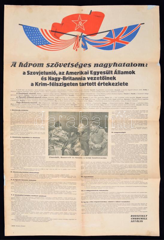 1945 Plakát a Jaltai konferencia döntetéséről Roosevelt, Churhill és ... https://www.darabanth.com/de/260-Fernauktion/260.0/Andere-Sammelgebiete/Drucksachen~26/1945-Plakat-a-Jaltai-konferencia-donteteserol-Roosevelt-Churhill-es-Sztalin-reszveteleve~II1283252