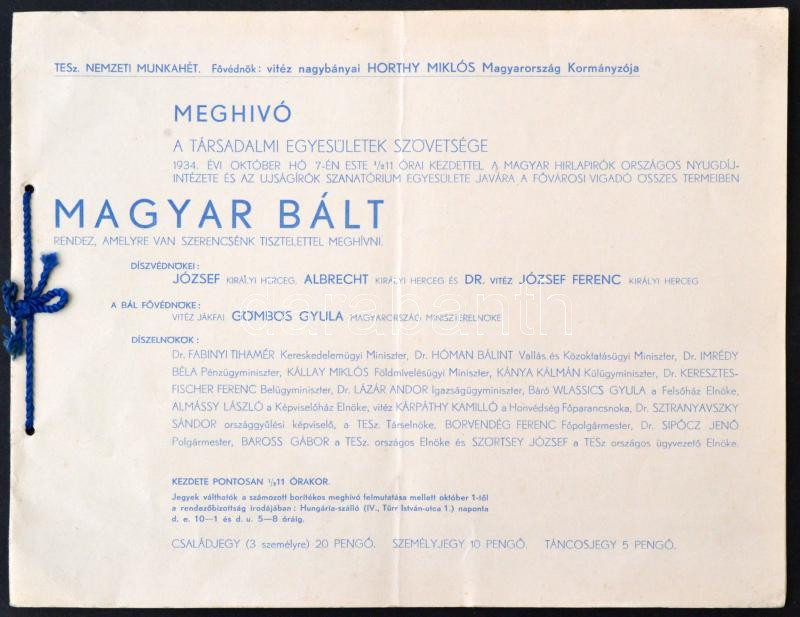 cca 1930 Magyar Bál meghívó, fővédnök: vitéz nagybányai Horthy Miklós ... https://www.darabanth.com/de/260-Fernauktion/260.0/Andere-Sammelgebiete/Drucksachen~26/cca-1930-Magyar-Bal-meghivo-fovednok-vitez-nagybanyai-Horthy-Miklos-Magyarorszag-korman~II1283061