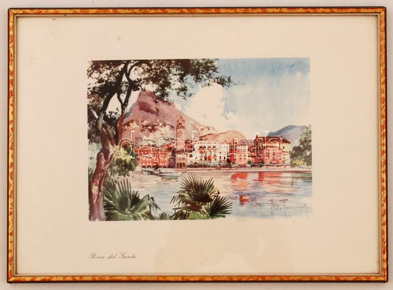 Beschreibung: 2 db vízparti városokat ábrázoló nyomat, üvegezett keretben, 15x21 cm, keret: 25x35 cm