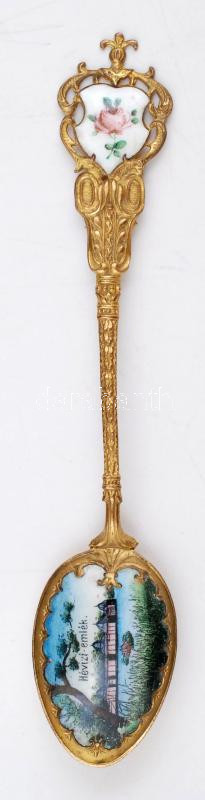 Beschreibung: "Hévízi emlék" feliratú zománcozott fém emlékkanál, h: 13,5 cm