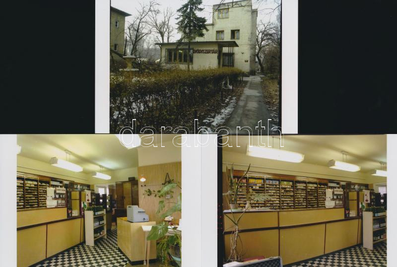 1981 Budapest, Dósa utca 10/6. sz. alatti gyógyszertár belső fotói, 3 db korabeli professzionális felvételről készült modern nagyítás, adatolva a negatívokat nyilvántartó füzetben volt, 10x15 cm
