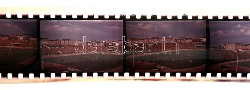 Beschreibung: Az Aranycsapat játszik a Népstadionban az osztrákok ellen, színes 13 kockából álló diapozítiv