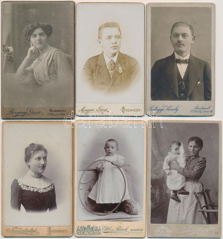cca 1860-1900 Korabeli, keményhátú családi fotók, különböző budapesti műtermekből: Szerdahelyi,Palágyi, Magyar, Rozgonyi, Székely Aladár, Elbl,6db, cca10x6cm