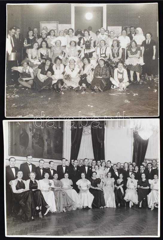Beschreibung: cca 1930 2 db fénykép báli összejövetelekről, pecséttel jelzettek (Schäffer Gy. fotószalon, ill. Artistica Fotó), 17,5×23,5 cm