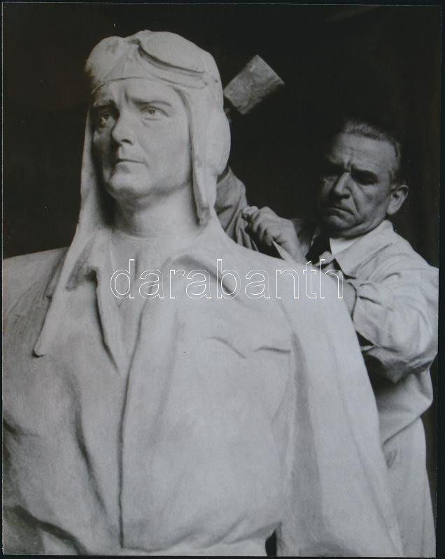 cca 1943 Vitéz nagybányai Horthy István (1904-1942) szobrát készíti Kisfaludy Strobl Zsigmond szobrászművész, korabeli fénykép modern műtárgy másolata, 14,5x11,5 cm