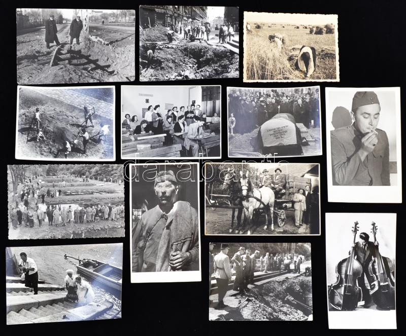 Beschreibung: cca 1944-1960 Tiszavölgyi József (1909-?) pecséttel jelzett 13 db vintage felvétele, egy részük feliratozva is, 9x12 cm és 9x14 cm