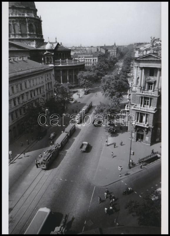 cca 1960 Budapest, Villamosok a Bajcs-Zs. úton, Kotnyek Antal (1921-1990) fotóriporter hagyatékában levő, professzionális felvételről készült modern nagyítás, 18x13 cm
