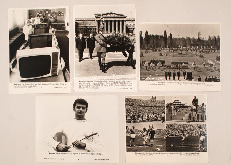 Beschreibung: cca 1970 46 db MTI sajtófotó az 1970-es évekből. Sportesemények, történelmi események, politikusok, érdekességek, 21x25 cm