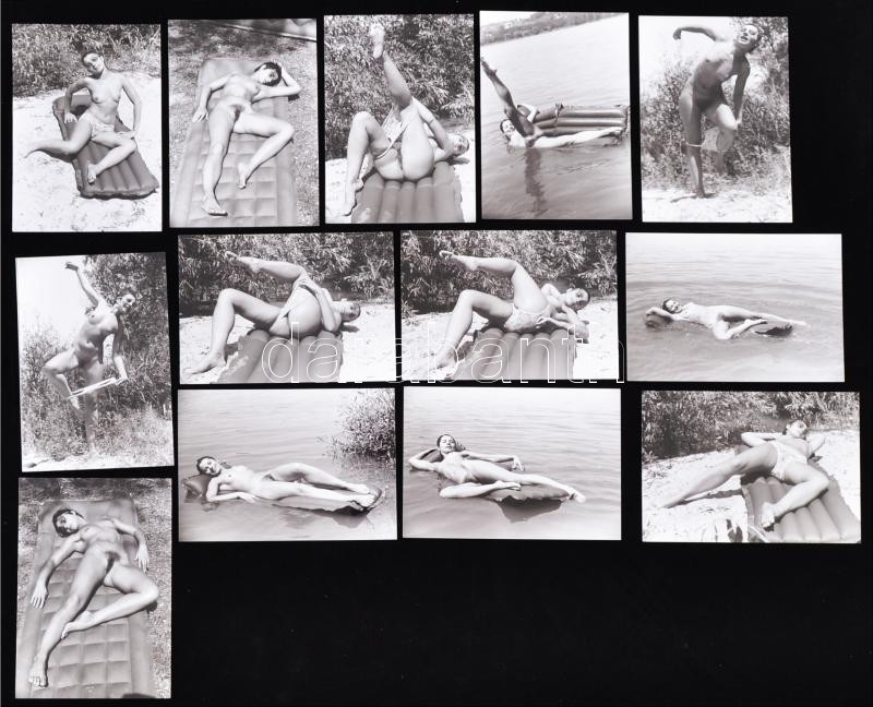Beschreibung: cca 1970 Egy gumimatrac izgalmas emlékei, 13 db korabeli, finoman erotikus felvétel modern nagyítása, 9x13 cm / 13 erotic photos, 9x13 cm
