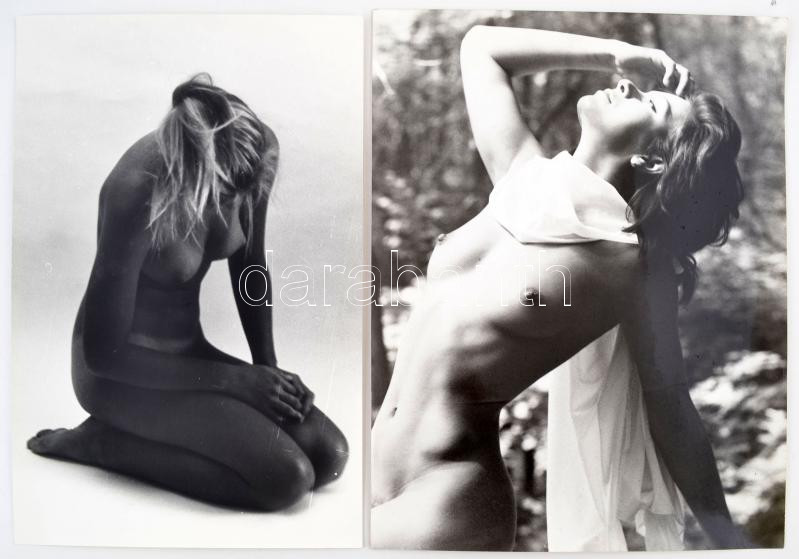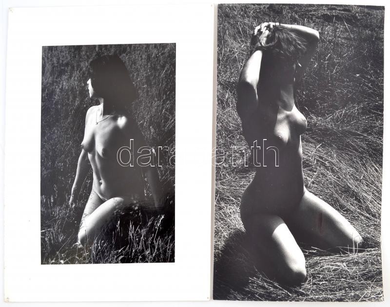 Beschreibung: cca 1975 Aktfotók, 4 db finoman erotikus felvétel, 40x30 cm és 29x19 cm közötti méretekben