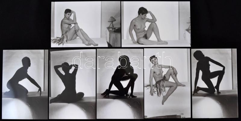 Beschreibung: cca 1975 Alkalom szülte képsorozat, 13 db korabeli, finoman erotikus felvétel modern nagyítása, 15x10 cm