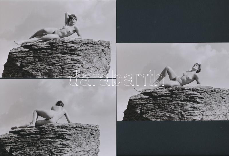 Beschreibung: cca 1975 Egyedül a csúcson, 3 db korabeli, finoman erotikus felvétel modern nagyítása, 15x10 cm / 3 erotic photos, 15x10 cm