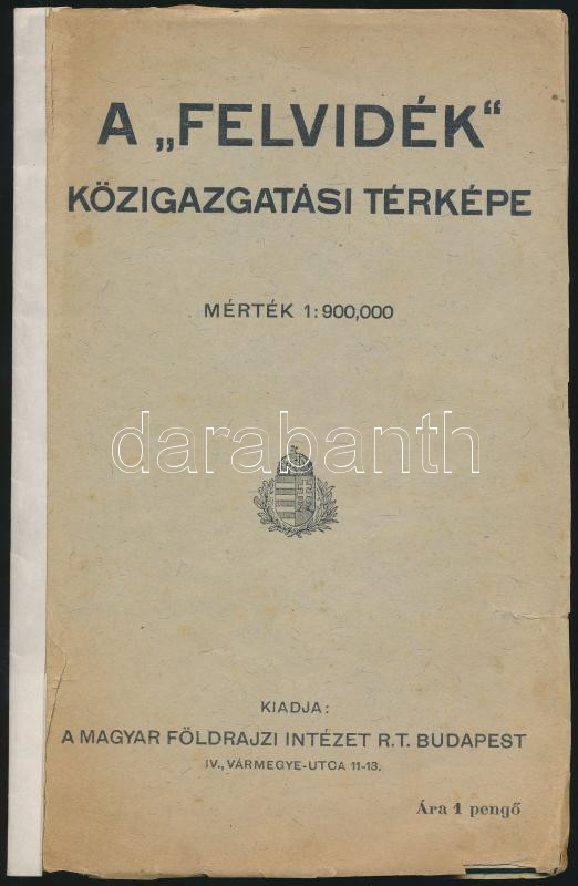 Beschreibung: [1939] A "Felvidék" közigazgatási térképe, 1:900000, Magyar Földrajzi Intézet Rt., a borító utólag javított, egy helyütt szakadással, 36×71,5 cm