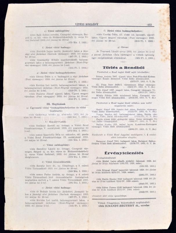 1933 Vitézi Közlöny, Az Országos Vitézi Szék hivatalos közlönye, kissé... https://www.darabanth.com/de/260-Fernauktion/260.0/Andere-Sammelgebiete/Militaria~24/1933-Vitezi-Kozlony-Az-Orszagos-Vitezi-Szek-hivatalos-kozlonye-kisse-szakadozott-szelekk~II1283010