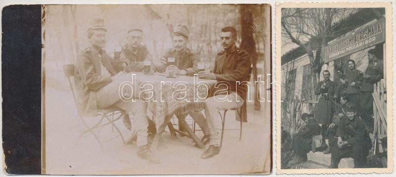 Beschreibung: Söröző katonák, fotó, fotólap, 2db, 9x6cm és 9x14cm