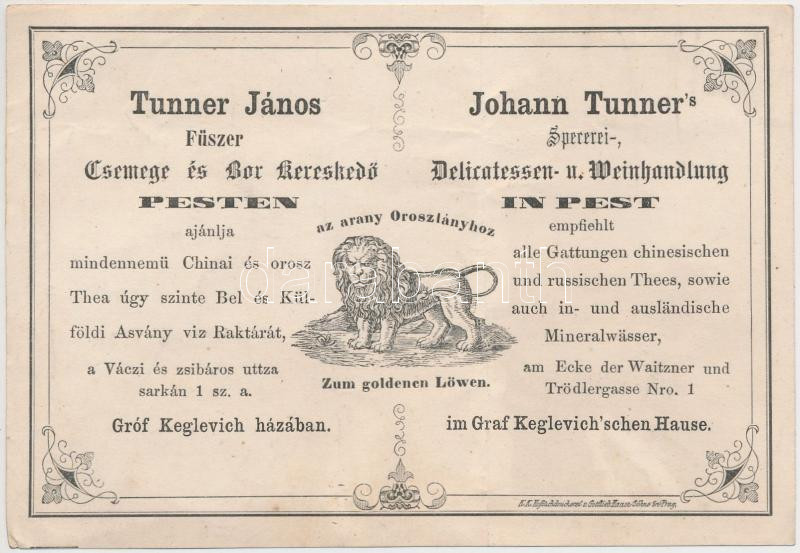 cca 1863-1870 Tunner János pesti fűszerkereskedő reklámja magyar és né... https://www.darabanth.com/de/260-Fernauktion/260.0/Andere-Sammelgebiete/Werbungen~19/cca-1863-1870-Tunner-Janos-pesti-fuszerkereskedo-reklamja-magyar-es-nemet-nyelven~II1285041