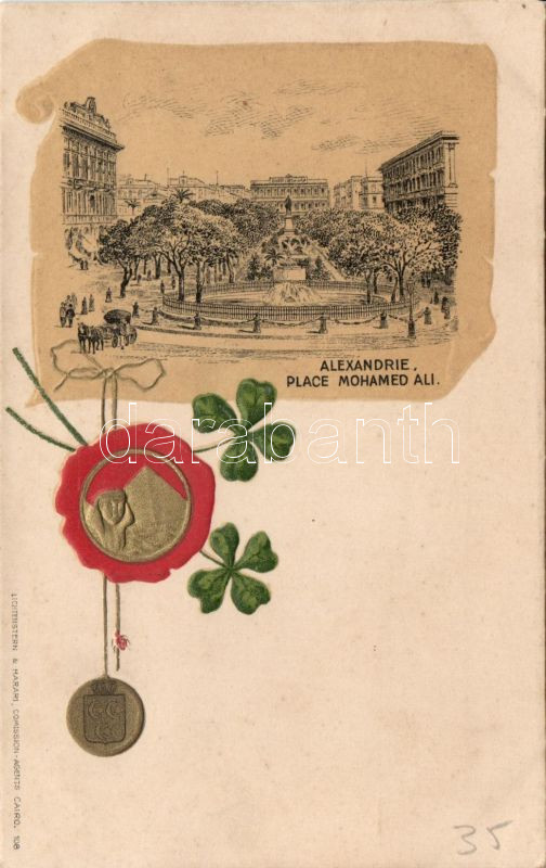 Alexandrie, Alexandria; Place Mohamed Ali Emb. litho (cut) https://www.darabanth.com/de/260-Fernauktion/260.0/Ansichtskarten/Agypten~100018/Alexandrie-Alexandria-Place-Mohamed-Ali-Emb-litho-cut~II1281596