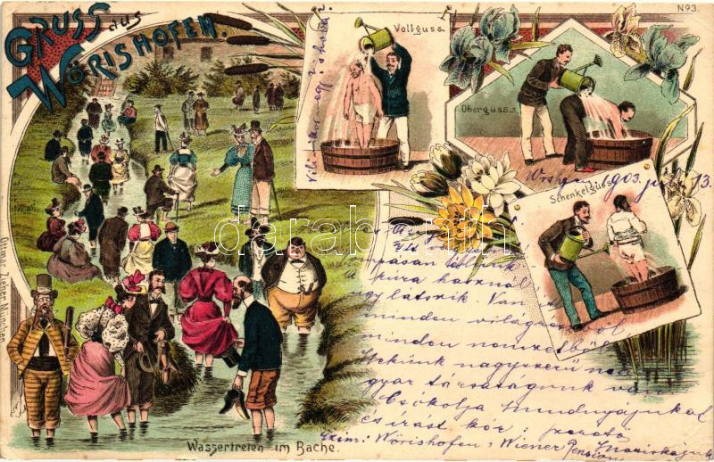 Bad Wörishöfen; Wassertreten im Bache, Vollguss, Oberguss, Schenkelgus... https://www.darabanth.com/de/260-Fernauktion/260.0/Ansichtskarten/Deutschland~100046/Bad-Worishofen-Wassertreten-im-Bache-Vollguss-Oberguss-Schenkelguss-treading-and-pouring-wat~II1284736