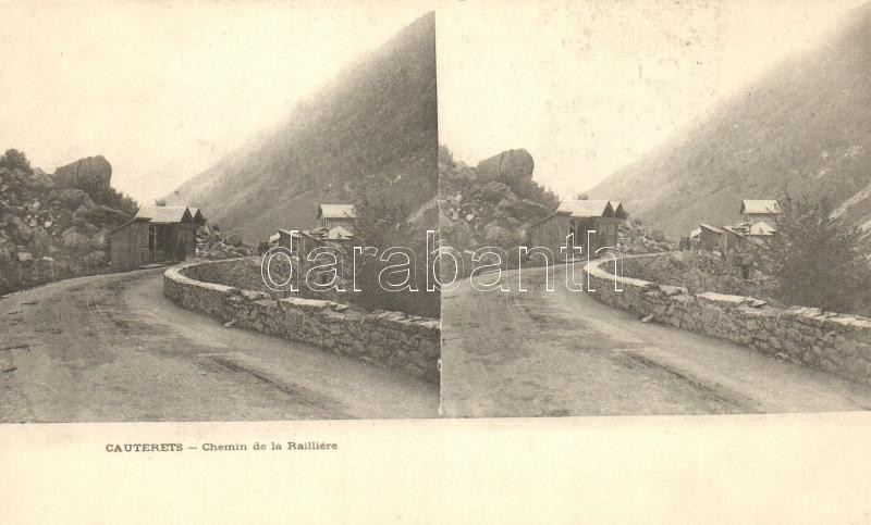 Cauterets, Chemin de la Railliere / road, stereo postcard https://www.darabanth.com/de/260-Fernauktion/260.0/Ansichtskarten/Frankreich~100021/Cauterets-Chemin-de-la-Railliere-road-stereo-postcard~II1256225