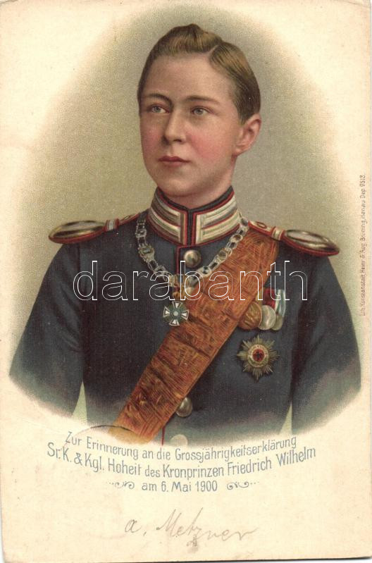 1900 Zur Erinnerung an die Grossjährigkeitserklärung Sr.K.&Kgl. Hoheit des Kronprinzen Friedrich Wilhelm / Wilhelm, German Crown Prince, memorial card, litho