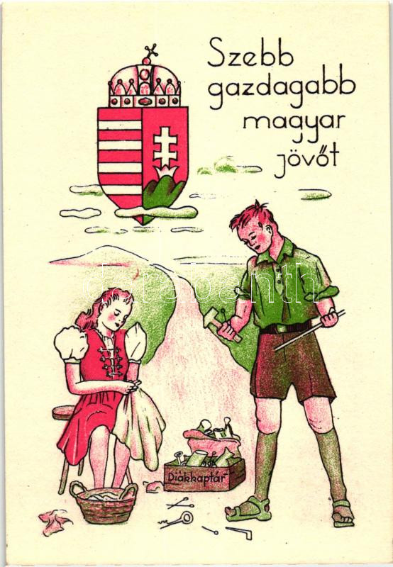 'Szebb, Gazdagabb magyar jövőt!' Diákkaptár / Hungarian Yout... https://www.darabanth.com/de/260-Fernauktion/260.0/Ansichtskarten/Propaganda-Politik~100104/Szebb-Gazdagabb-magyar-jovot-Diakkaptar-Hungarian-Youth-Association-propaganda-card-s-Cso~II1270759