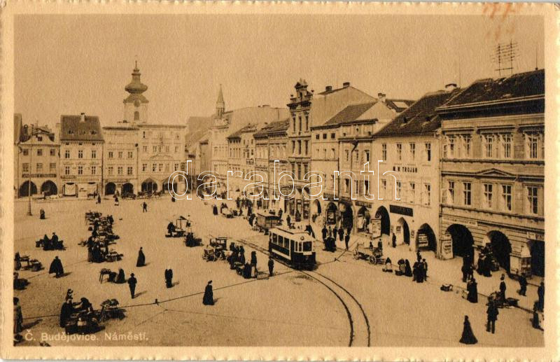 Ceské Budejovice, Námestí / square, tram, pharmacy, market, shop of M.... https://www.darabanth.com/de/260-Fernauktion/260.0/Ansichtskarten/Tschechische-Republik~100012/Ceske-Budejovice-Namesti-square-tram-pharmacy-market-shop-of-MW-Trojan-Singer-and-Eduar~II1244325