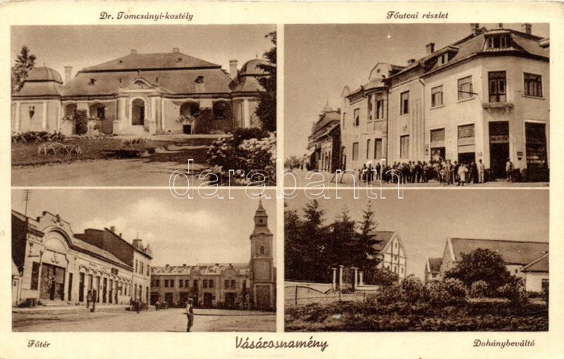 Vásárosnamény, Dr. Tomcsányi-kastély, Főutcai részlet, Főtér, Dohánybe... https://www.darabanth.com/de/260-Fernauktion/260.0/Ansichtskarten/Ungarn~100019/Vasarosnameny-Dr-Tomcsanyi-kastely-Foutcai-reszlet-Foter-Dohanybevalto-Rb~II1281073