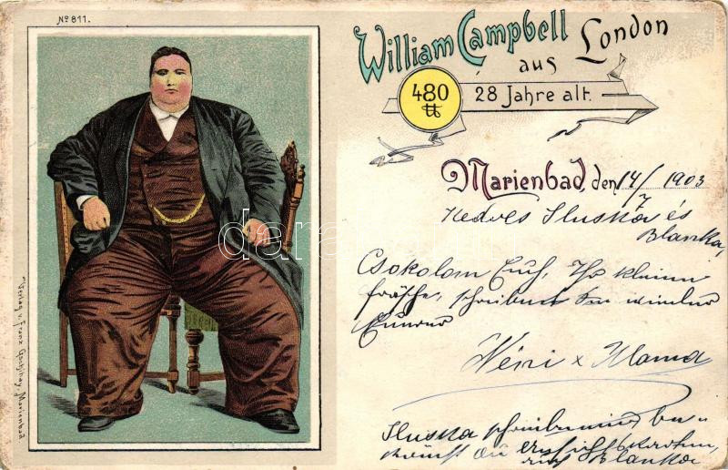 Marienbad, William Campbell aus London, 28 Jahre alt, 480 kg / World... https://www.darabanth.com/de/260-Fernauktion/260.0/Ansichtskarten/Zirkus~100072/Marienbad-William-Campbell-aus-London-28-Jahre-alt-480-kg-Worlds-heaviest-man-litho-EK~II1284744
