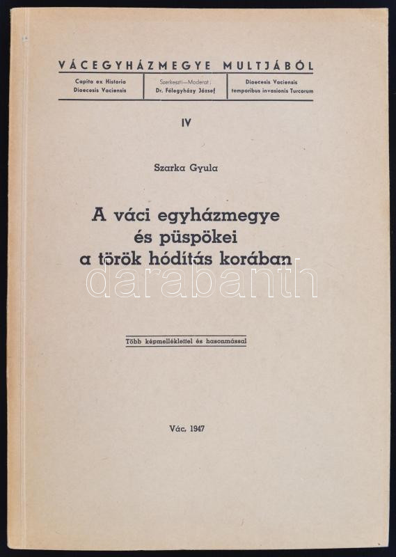 Szarka Gyula: A váci egyházmegye és püspökei a török hódítás korában. Több képmelléklettel és hasonmással. Vácegyházmegye Multjából IV. Vác, 1947, Kapisztrán- Nyomda