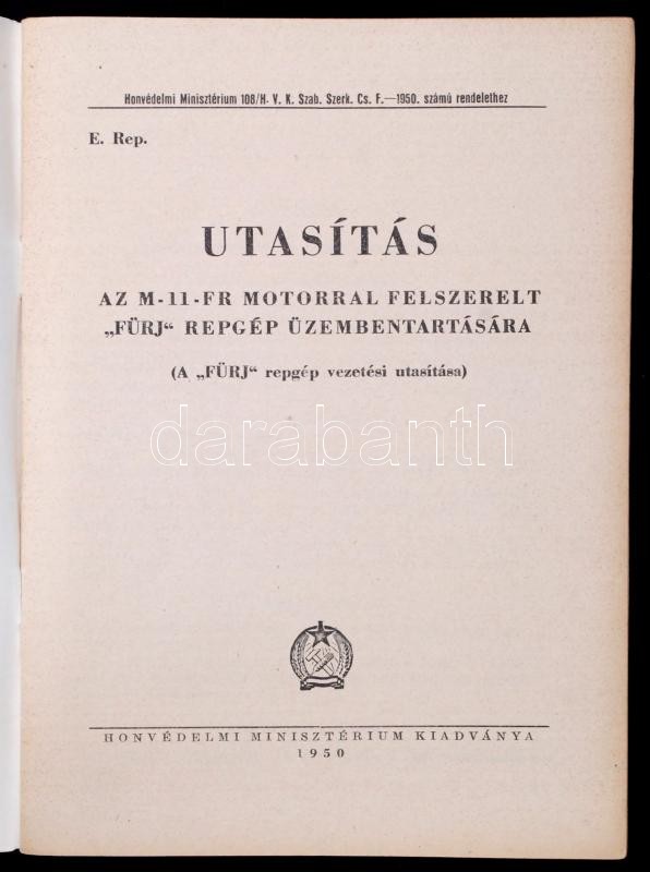 Beschreibung: Utasítás az M-11-FR motorral felszerelt "FÜRJ" repgép üzembentartására és összeszerelésére. Vezetési utasítás. Bp., 1950, Honvédelmi Minisztérium. 48 p. Kiadói papírkötésben.
