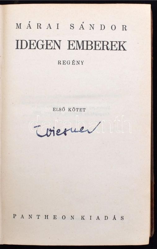 Márai Sándor: Idegen emberek I-II. Bp., 1930, Pantheon. Első kiadás! ... https://www.darabanth.com/de/260-Fernauktion/260.0/Bucher/Bucher-Sonstige-Raritaten~40/Marai-Sandor-Idegen-emberek-I-II-Bp-1930-Pantheon-Elso-kiadas-Bibliofil-bordazott-felb~II1287744