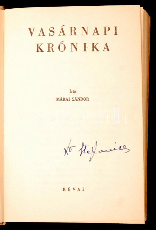 Márai Sándor: Vasárnapi krónika. Bp., 1943, Révai. 381 p. Kiadói félvá... https://www.darabanth.com/de/260-Fernauktion/260.0/Bucher/Bucher-Sonstige-Raritaten~40/Marai-Sandor-Vasarnapi-kronika-Bp-1943-Revai-381-p-Kiadoi-felvaszonkotesben-Elso-~II1250944