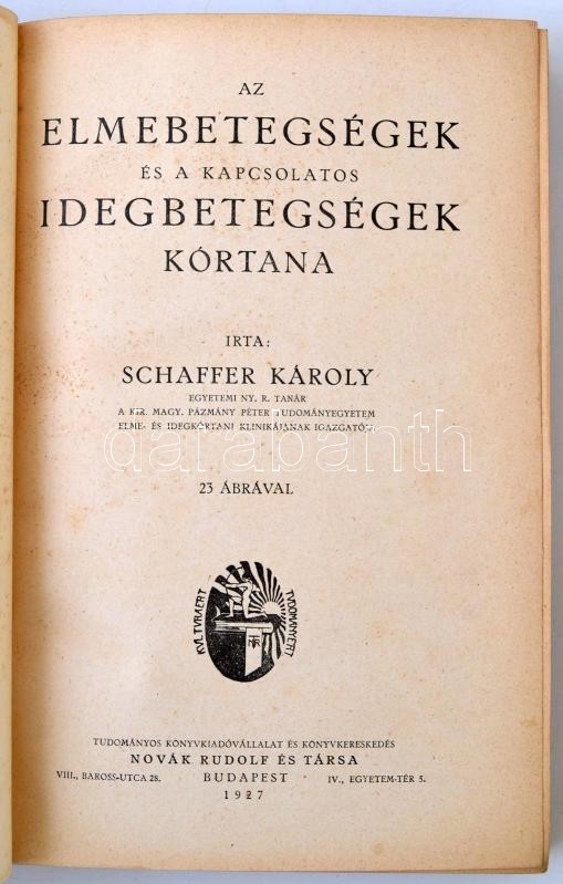 Schaffer Károly: Elme- és idegkórtan. Bp., 1927, Novák R. 355 p. Kiadó... https://www.darabanth.com/de/260-Fernauktion/260.0/Bucher/Bucher-Wissenschaft-und-Technik~400052/Schaffer-Karoly-Elme-es-idegkortan-Bp-1927-Novak-R-355-p-Kiadoi-kopottas-foltos-egesz~II1284548