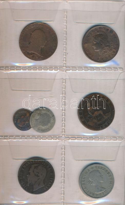 Beschreibung: 52db-os magyar és külföldi fémpénz gyűjtemény műbőr albumba rendezve, közte Német Államok / Bajorország 1808. 6kr Ag "I. Miksa József" T:3