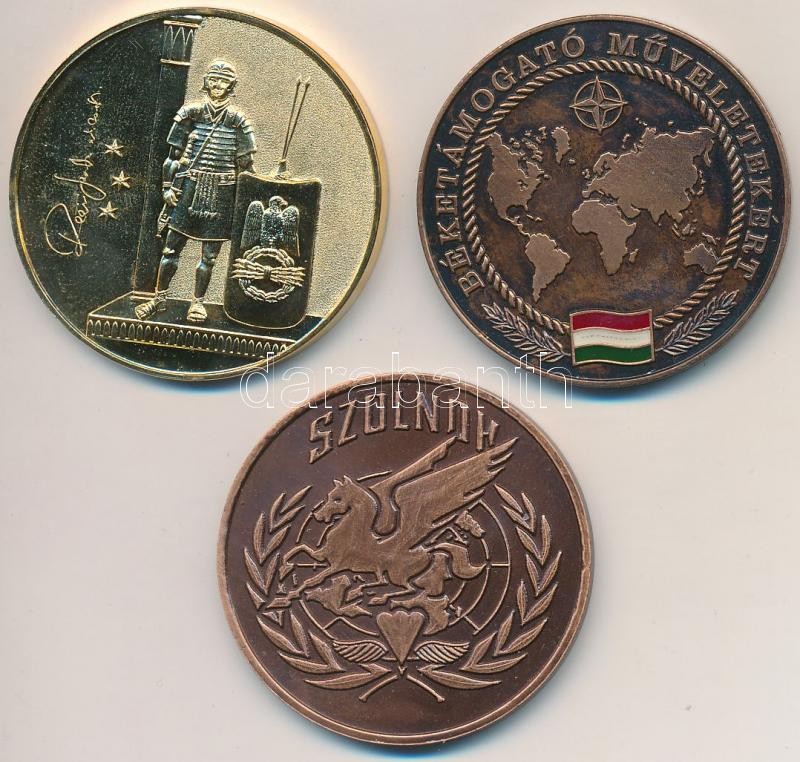 Beschreibung: 3db klf magyar militária emlékérem, DN "Szolnok / Pro Patria" Br emlékérem (42,5mm), "MH 43. HÃradó és Vezetéstámogató Ezred - Székesfehérvár" aranyozott fém emlékérem (42,5mm) T:1-,2,PP ujjlenyomat