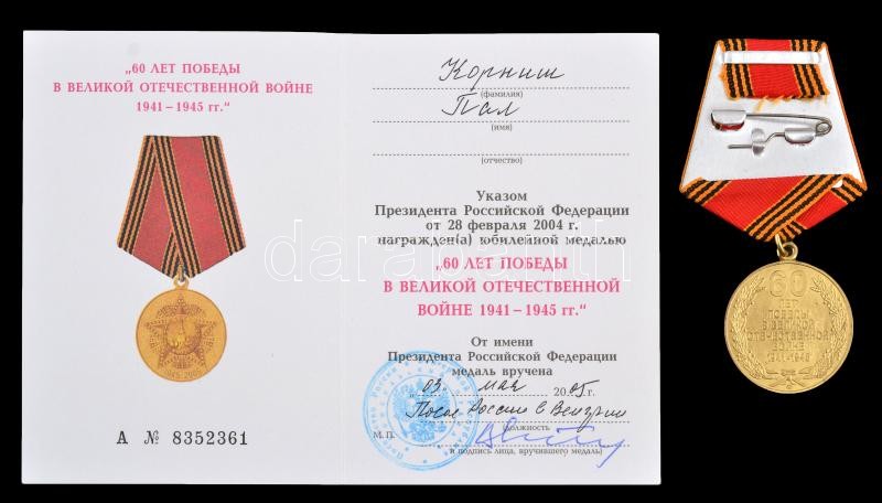 Oroszország 1995. "1941-1945-ös Nagy Honvédő Háborúban aratott győzelem hatvanadik évfordulójára" tombak emlékérem mellszalagon, igazolvánnyal T:1-
