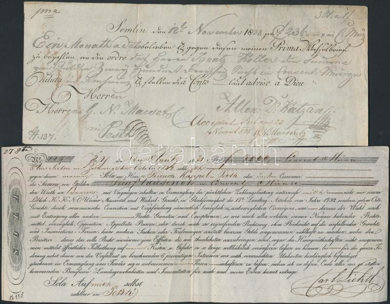Beschreibung: 1832-1838. 2db klf kitöltött váltó T:III