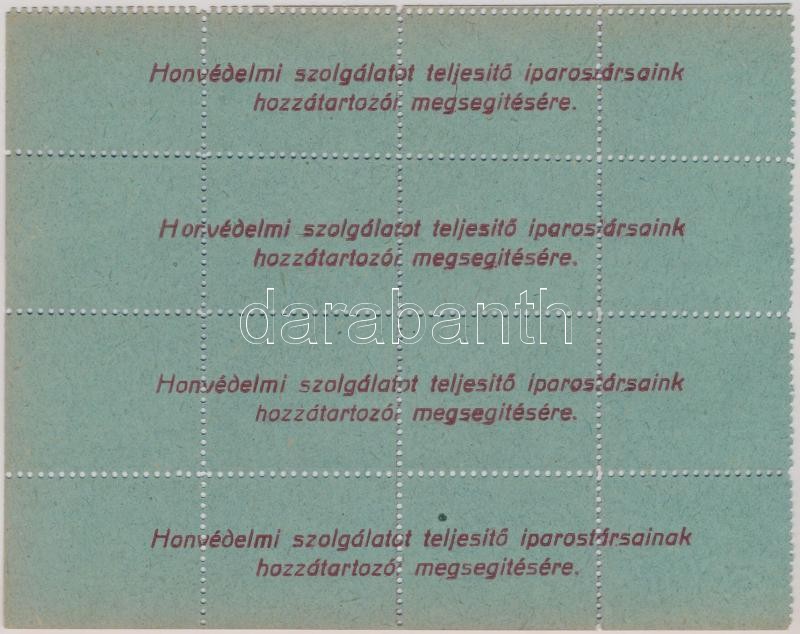 Beschreibung: ~1916. "Honvédelmi szolgálatot teljesítő iparostársaink hozzátartozói megsegítésére" 100f (16db) 4x4-es ívben sorszámozva T:I