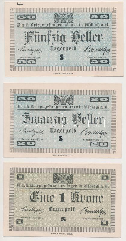 Ausztria / Aschach hadifogolytábor 1914-1918. 20h + 50h + 1K T:I,I-