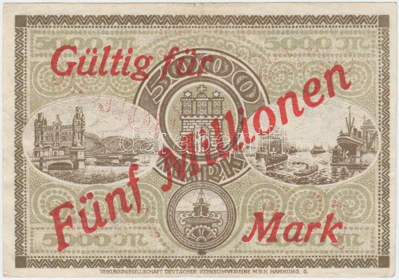 Németország / Weimari Köztársaság / Hamburg 1923. 5000M felülbélyegzés... https://www.darabanth.com/de/260-Fernauktion/260.0/Numismatik/Notgelden~300005/Nemetorszag-Weimari-Koztarsasag-Hamburg-1923-5000M-felulbelyegzessel-TIII--German-We~II1280245