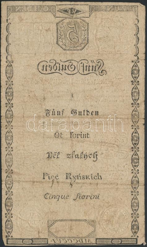 Adamo G39 https://www.darabanth.com/de/260-Fernauktion/260.0/Numismatik/Ungarische-Banknoten~300006/1806-5G-TIII-IV--Austrian-Empire-1806-5-Gulden-CVG-G--Adamo-G39~II1285017