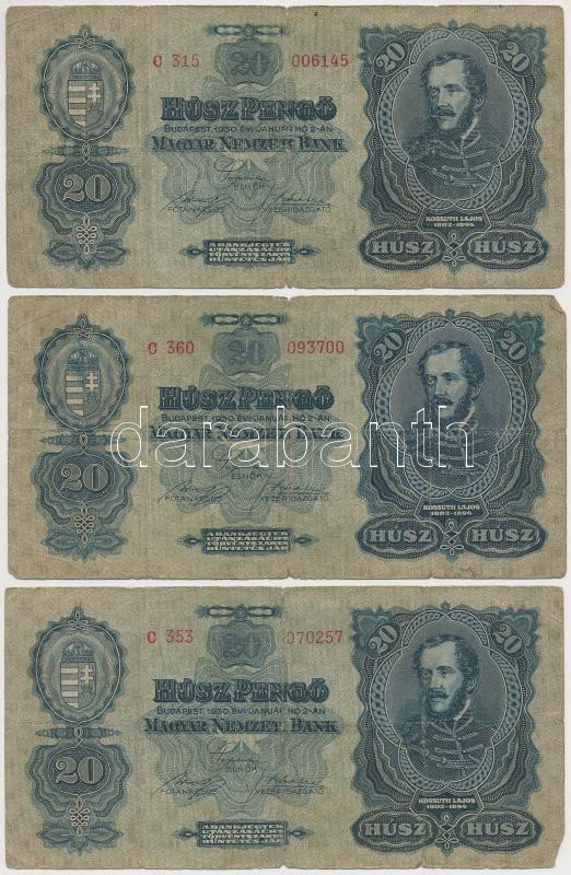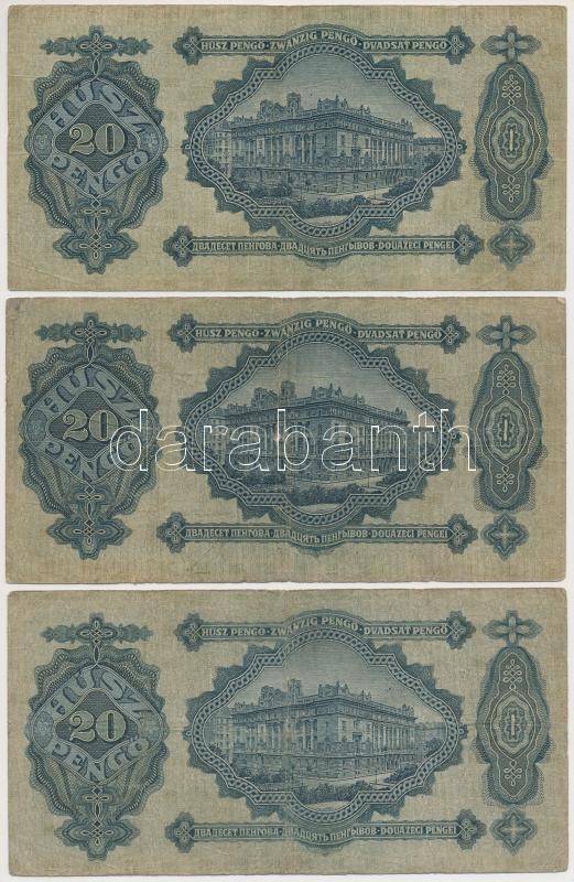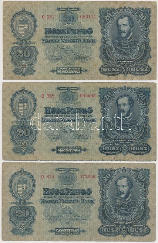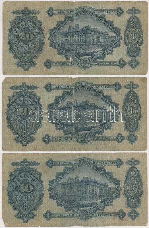 1930. 20P (6x) T:III,III- https://www.darabanth.com/de/260-Fernauktion/260.0/Numismatik/Ungarische-Banknoten~300006/1930-20P-6x-TIII-III-~II1285757