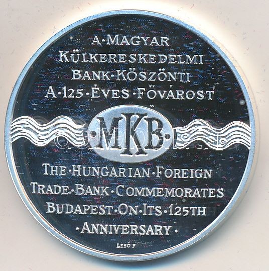 Lebó Ferenc (1960-) 2003. "Budapest a Duna gyöngye / Az MKB köszönti a 125 éves fővárost" Ag emlékérem eredeti dísztokban (31,14g/0.999/42,5mm) T:PP fo.