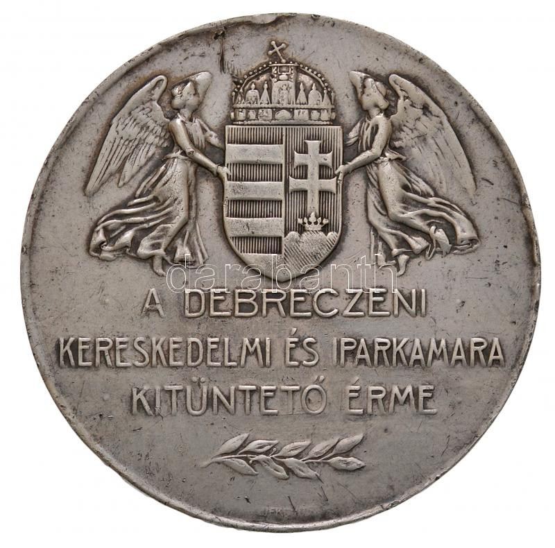 Löfkovits Arthur (1863-1935) 1914. "A Debreczeni Kereskedelmi és Iparkamara kitüntető érme / Jeles tanulókból lesznek kitűnő mesterek!" jelzetlen Ag emlékérem (42,37g/50mm) T:2- több ph.