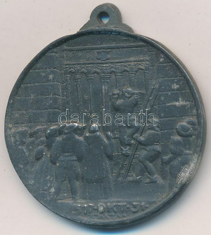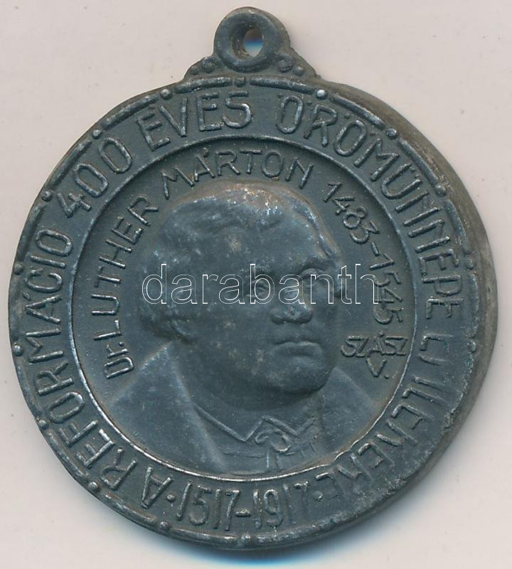 Szász Vilmos (1884-1923) 1917. "A reformáció 400 éves örömünnepe emlékére 1517-1917 - Dr. Luther Márton 1483-1545 / 1517. okt. 31." hadifém emlékérem füllel (33,5mm) T:2