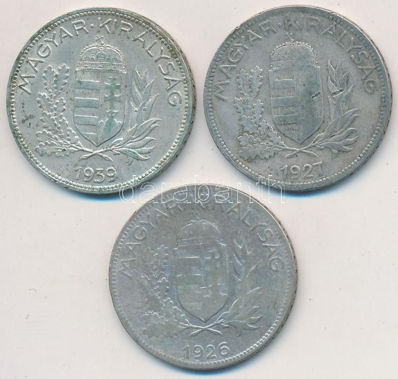 1926-1939. 1P Ag (3xklf) T:2,2-,3 https://www.darabanth.com/de/260-Fernauktion/260.0/Numismatik/Ungarische-Munzen-und-Munzen-mit-ungarischem-Munzzeichen~300007/1926-1939-1P-Ag-3xklf-T2-2-3~II1287793